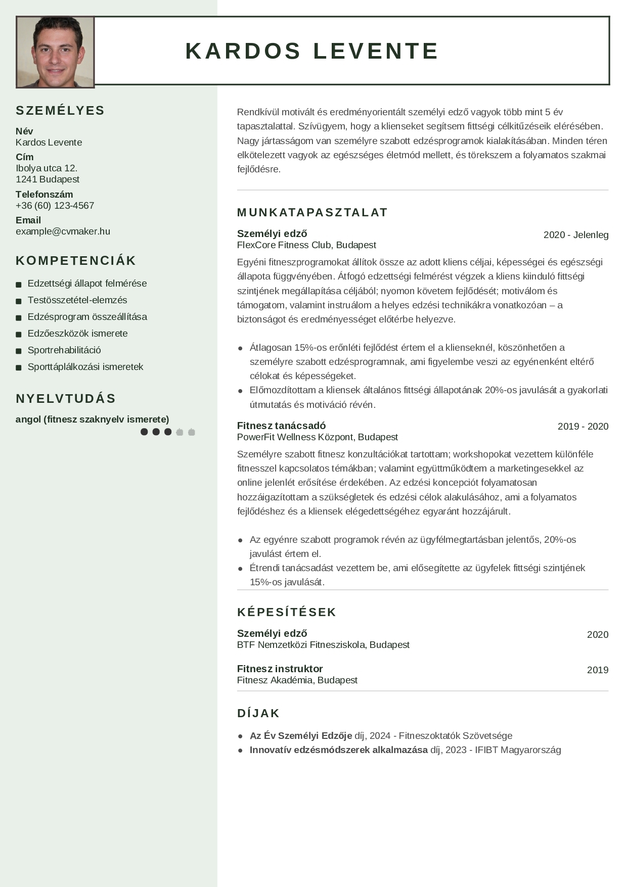 Töltsd le ezt a díjakat tartalmazó önéletrajz-mintát pdf-formátumban.